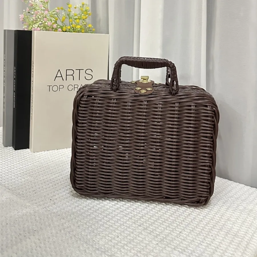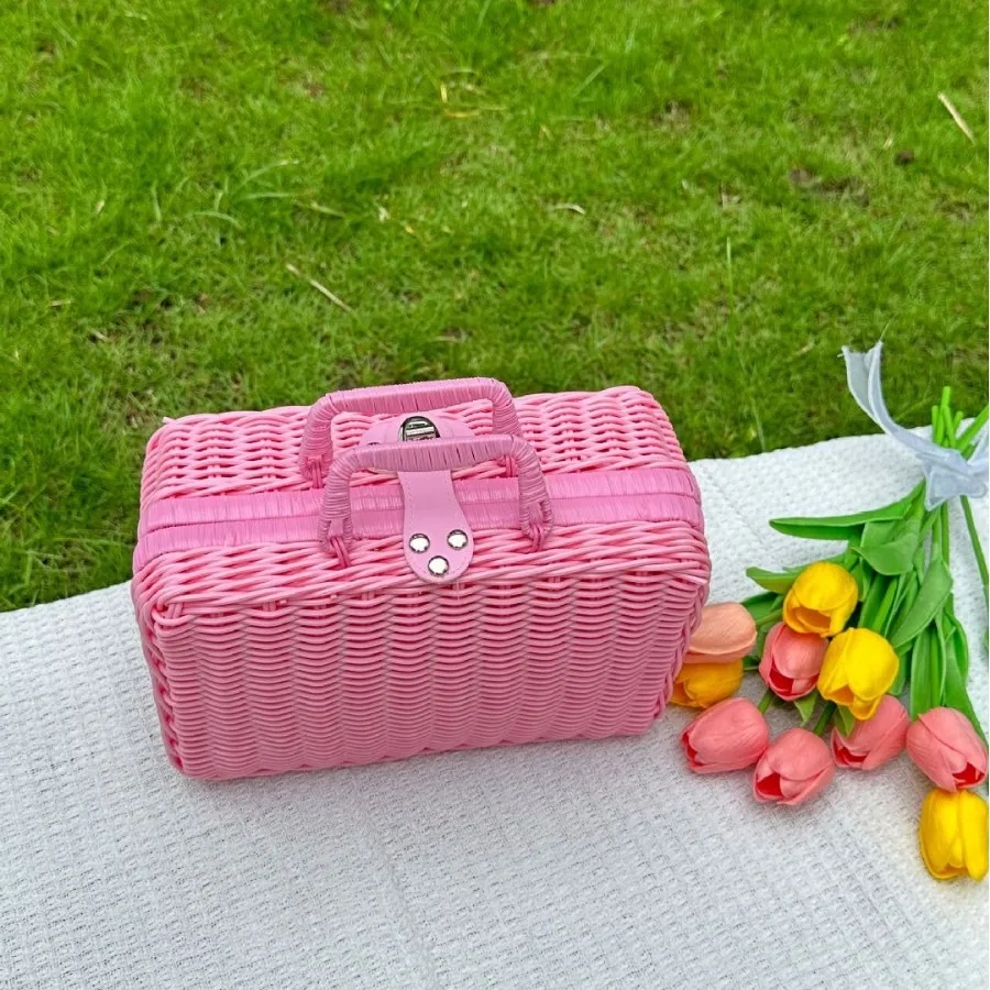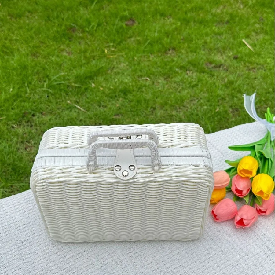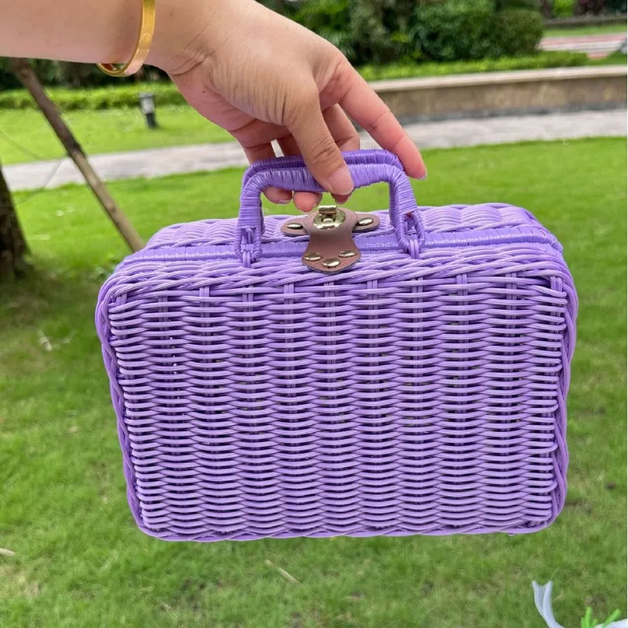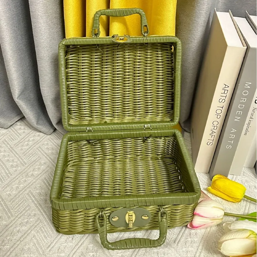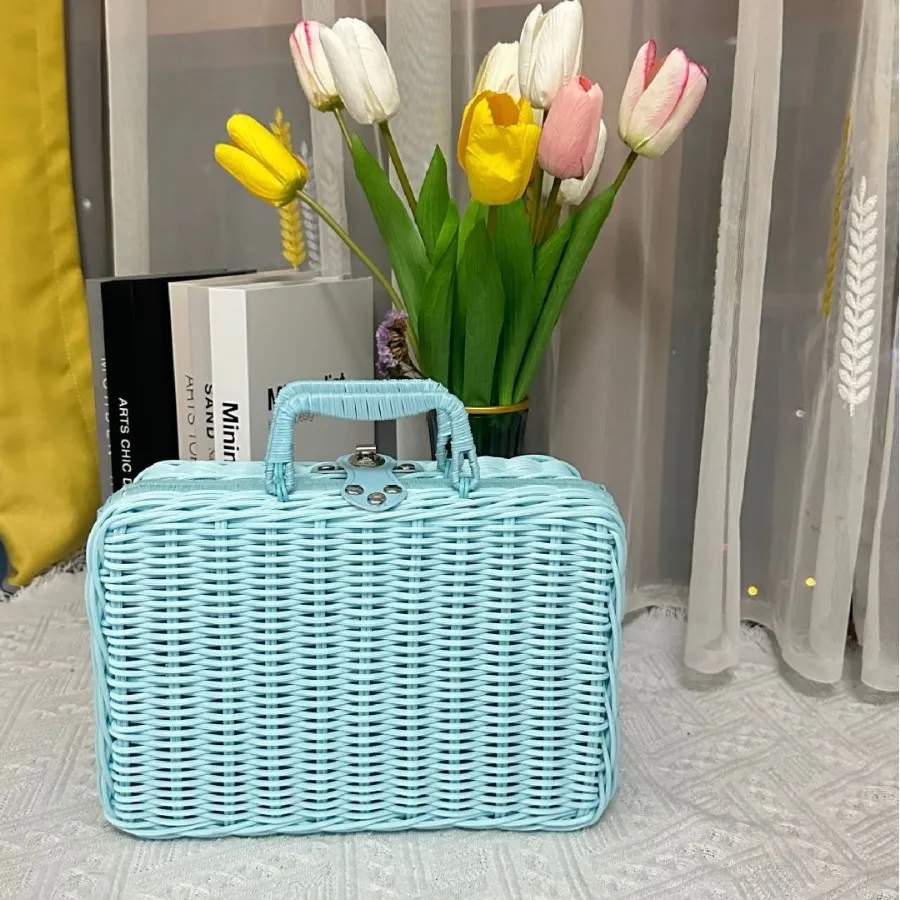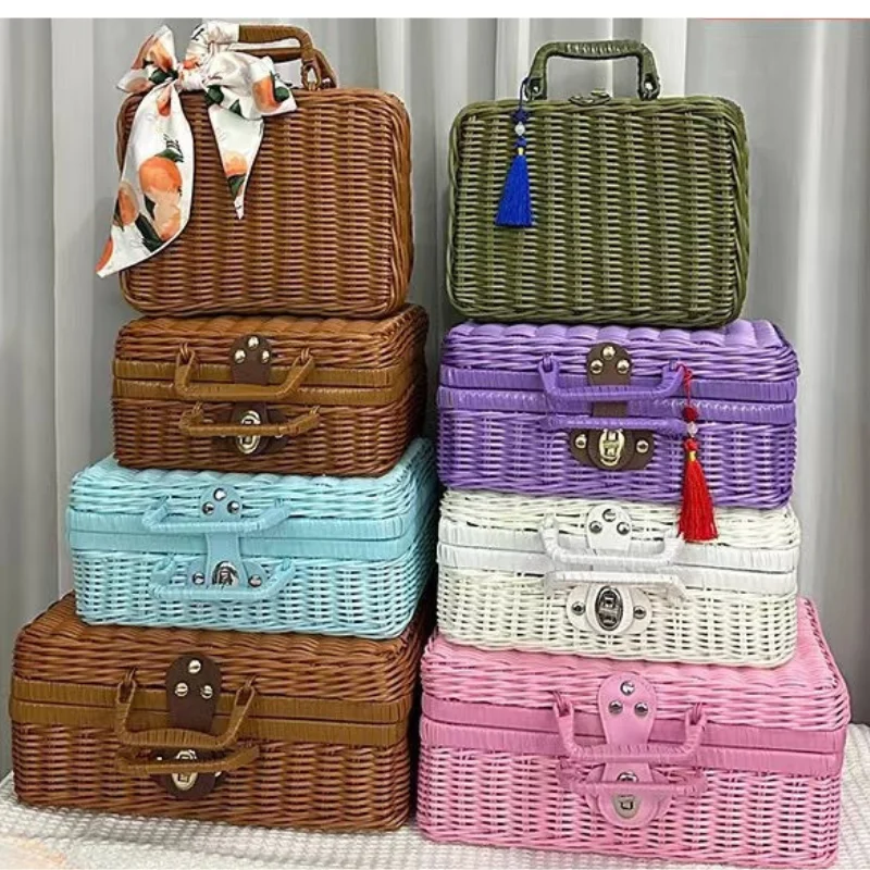 Handmade Cosmetic Storage Box Rattan Suitcase Gift Box Solid PP Woven Basket Christmas Easter